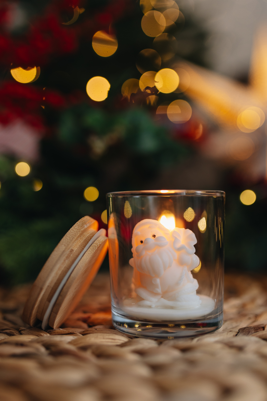 Świeca sojowa Mikołaj – świąteczny uśmiech w szklanym słoiczku